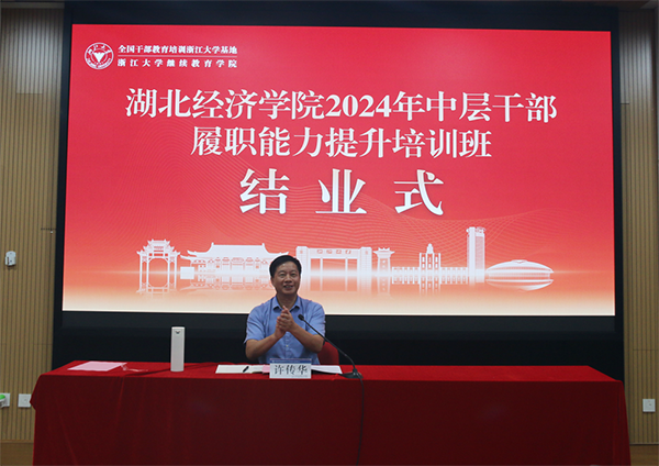本网讯 7月8日至14日,学校2024年度中层干部履职能力提升培训班在浙江大学举办。校党委副书记汪达、纪委书记王栎、党委常委许传华,全国干部教育培训浙江大学基地常务副主任、浙江大学继续教育学院院长刘继荣出席,学校66名中层干部参加。