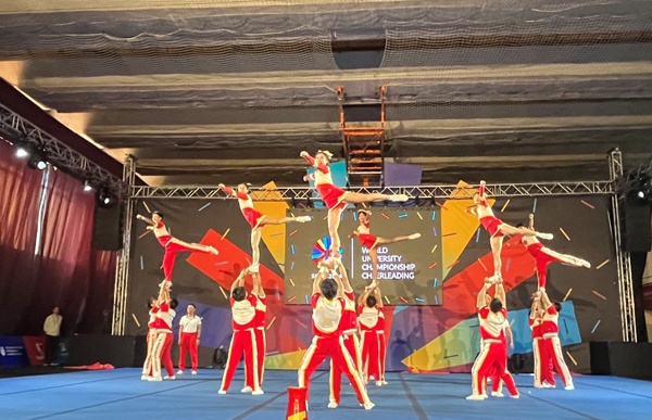 比赛中,我校学生团队保持良好的竞技状态,以团队超凡的默契,完成每一个技巧配合,将最佳技艺展现在世界的舞台上,赛出了风格,赛出了水平,向世界充分展示了新时代中国大学生的青春风采和竞技实力。