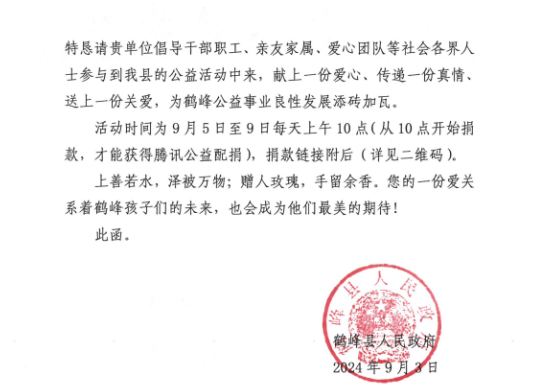 附件:《关于支持鹤峰县2024年度“99公益日”活动的函》