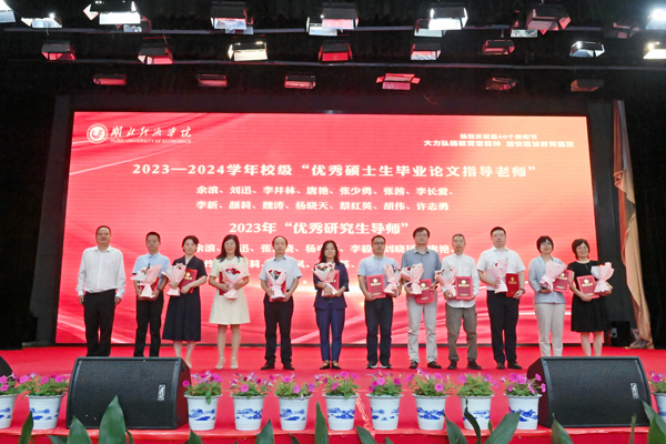 副校长付宏为校级“优秀硕士生毕业论文指导老师”、“优秀研究生导师”获评者颁奖并合影