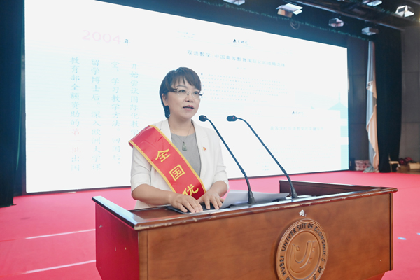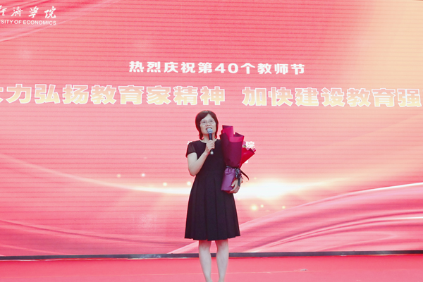 执教40周年教师代表、财政与公共管理学院党委书记蔡红英发言