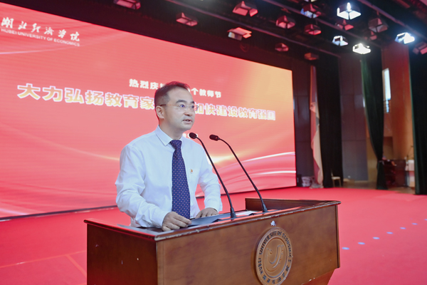校党委书记高义勇向全体教职员工和离退休老教师致以节日的问候,向长期以来关心和支持学校事业发展的广大校友和社会各界朋友表示衷心的感谢。高义勇表示,学校的各项事业发展离不开教师们的辛勤耕耘,学校的成就荣誉离不开教师们的无私奉献,学生的成长更离不开教师们的情怀和智慧。他结合今年教师节 “大力弘扬教育家精神,加快建设教育强国” 的主题,就学校在推进中国式现代化新征程中如何促进高质量发展、教师如何更好作为提出了四点希望:一是希望广大教师坚守教育初心,强化使命担当;二是希望广大教师弘扬崇高师德,营造尊师风尚;三是希望广大教师勇于开拓创新,夯实育人本领。四是希望广大教师心系学校发展,共创美好未来。以“功成不必在我”的胸怀格局履行好“功成必定有我”的责任担当,奋力谱写全面建设特色鲜明的高水平财经大学新篇章。