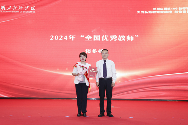本网讯 9月8日,庆祝第40个教师节暨全国教育系统先进集体和先进个人表彰活动举行。会计学院谈多娇教授获评“全国优秀教师”称号。