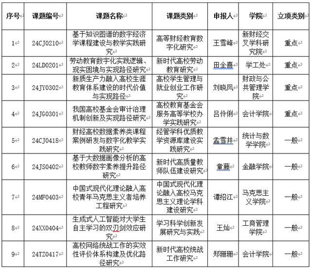 本网讯 近日,中国高等教育学会公布“2024年度高等教育科学研究规划课题”立项名单,我校9个项目获批立项,其中重点项目4个、一般项目5个。