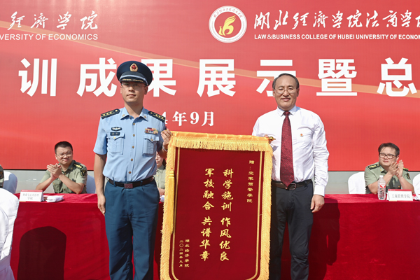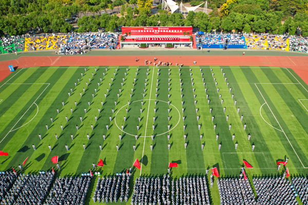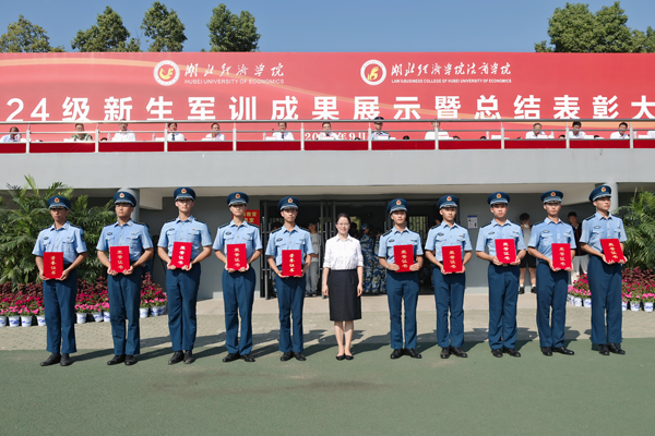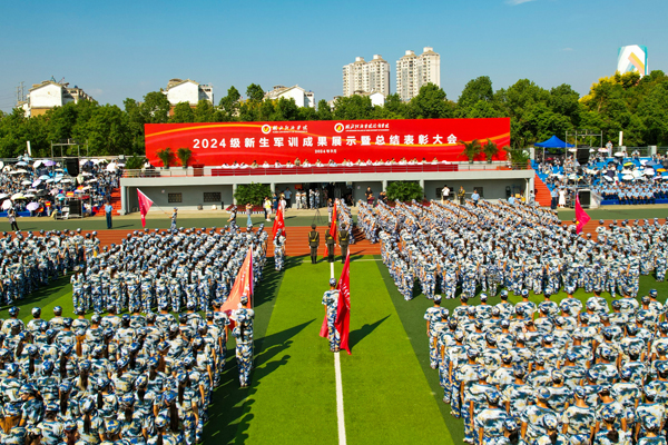 本网讯 9月18日,2024级新生军训成果展示暨总结表彰大会在西区田径场举行。校领导高义勇、张国安、付宏、王栎、许传华,空军预警学院学员四大队上校大队长张力,法商学院党委书记邓志华出席。学校办公室、教务处、学生工作处、保卫处、团委、校医院、后勤集团、亿优公司主要负责人;各学院分管学生工作的书记(副书记);2024级新生辅导员和全体新生参加。副校长何慧刚主持。