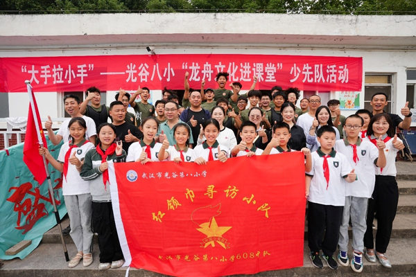 本网讯 10月13日,武汉市光谷第八小学608中队红领巾寻访小队在德育副校长柯琴、中队辅导员向丹娟老师的带领下,走进我校水上运动基地,开启了一场别开生面的非遗文化传承教育实践活动。