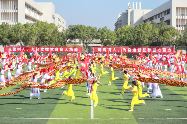 开幕式表演在热情欢快的《扇舞彩龙》中拉开序幕,身穿白色裙装的表演者,手持彩扇,随着音乐舞动,一颦一笑,尽显芳华。《舞韵瑜伽》表演者身姿曼妙,动作优美流畅,将身体的柔韧性展现得淋漓尽致。在《青春舞曲》中,表演者随着律动展现出优美的身体线条,欢快的音乐与婀娜的舞姿相得益彰。《律动芳华》中的表演者舞姿刚劲、有力,尽显力量之美,红色手花随着表演者的挥舞上下移动,夺人眼球。