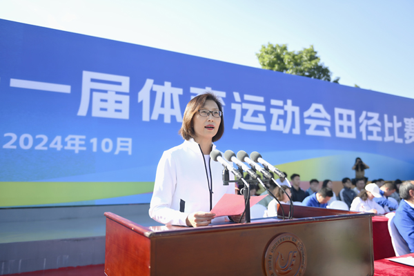 校长方洁在致辞中指出,体育是文明的火炬,是国力的象征,更是学校培养德智体美劳全面发展人才的重要基石。学校运动会打造的是人人来赛的舞台,追求的是人人健康的生活,弘扬的是人人向上的精神。她希望全体师生积极参与、以赛会友,共同感受体育的魅力、分享体育的快乐,把体育作为一种生活方式,更好成就出彩人生、赢得美好未来;希望全体运动员大显身手、赛出水平,以超越自我的信念、追求卓越的精神投身大学生活;希望裁判员和工作人员坚守岗位、严守规则,确保比赛安全顺利进行。