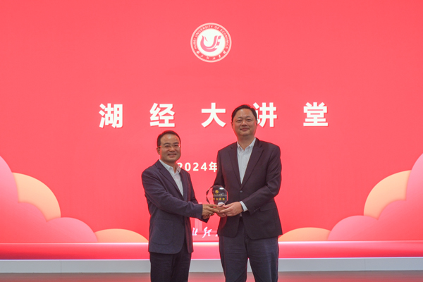 校党委书记高义勇向龚威教授赠送“湖经大讲堂”纪念品