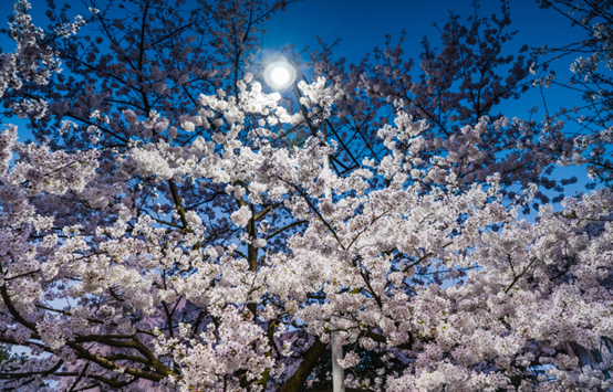 樱花谷中的樱花为早樱,樱花树沿着积思河两侧大规模、集中式种植,形成一条绵延700余米的樱花大道。每年三月,染井吉野樱等多个品种的樱花盛开,整片区域被粉白相间的花海覆盖。河岸两旁的樱花在春风中轻舞飞扬,花瓣随风飘落,营造出如雪般的视觉效果,成为校园春季特有的观赏胜地。