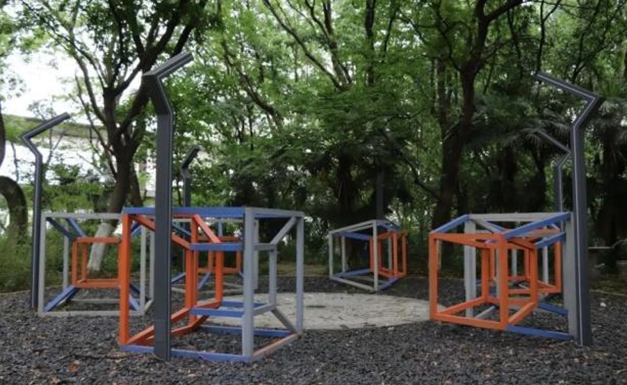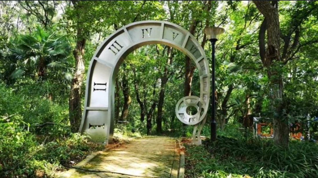 Located west of the Student Activities Center, the Time Forest preserves an untouched ecosystem. The Clock Arch at its entrance symbolizes the doors of opportunity each student opens toward a bright future, with Roman numerals inscribed to signify the passage and eternity of time. The Time Poems and Paintings installation, composed of six hypercubes, evokes a sense of futurism and technology. This serene forest stands as a witness to students' growth and aspirations along the Qiusuo Bridge, embodying their hopes for a promising future and a deep appreciation for the value of time.