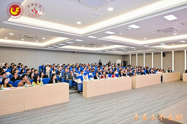 本网讯(通讯员 何发轩)11月9日,“青春永不告别”大学生素质培养班第十届结业仪式暨二十周年庆典活动举办。第十三届全国人大常委会委员、中国教育学会副会长周洪宇,学校原党委书记周元武,副校长何慧刚,中国青年报社湖北记者站站长雷宇,华中科技大学人文社科出版社社长周晓方,“中国青年五四奖章”获得者、建始县望坪初中志愿教师袁辉,部分中学教师代表,素质班指导教师代表和素质班校友代表200余人参加活动。