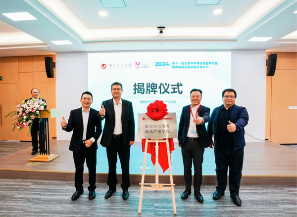 开幕式上,副校长何慧刚、中国对外贸易经济合作企业协会副会长郑樑、中国对外贸易经济合作协会国际商务与语言服务工作委员会会长王立非、湖北省国际商务与语言服务专家指导委员会理事长何明霞分别致辞。何慧刚、王立非为外国语学院和传神语联网网络科技有限公司共建的数智语言服务现代产业学院揭牌。数智语言服务现代产业学院将结合人工智能、大数据等现代信息技术,培养具备国际视野、创新能力和实践技能的商务英语人才,为推动我国商务英语教育与国际商务实践的深度融合提供人才支撑。