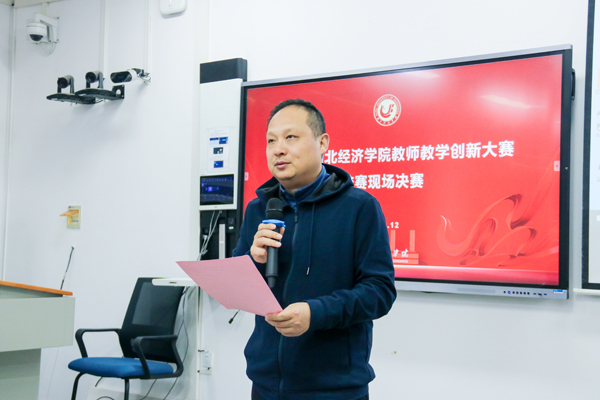 大赛邀请西安交通大学周屈兰、湖南大学吴志明、华南师范大学王颖、华中师范大学陈蓓、黄冈师范学院张薇薇、华中科技大学郭炜、武汉理工大学廖红、武汉大学黄海兰、华中农业大学曹敏惠等9位校外专家担任评委。副校长付宏出席并致辞。教务处、教师发展中心、国家级省级一流专业课程团队等教师代表现场观摩,场外师生观看直播。