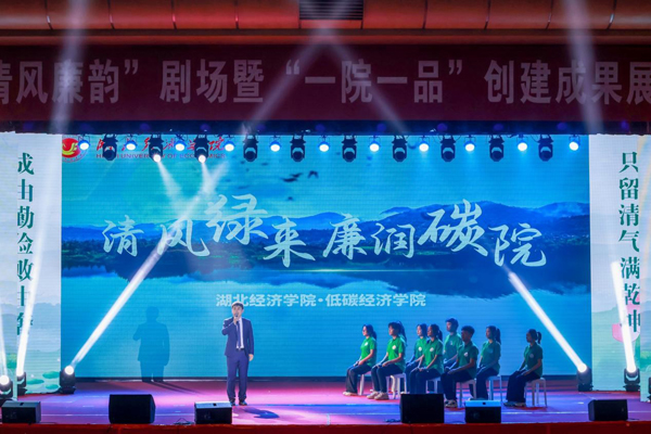体育经济与管理学院通过视频回顾、现场讲述的形式,全面展示了学院“阳光体院 四色四清”廉政品牌建设情况。由Amazing啦啦队带来的《清廉体院 清扬风尚》创意表演,高度还原了在FISU世界大学生啦啦操锦标赛中的技巧动作,展现了我校体育健儿顽强拼搏、团结协作、阳光自信的风采。信息管理学院党政领导班子成员及师生代表带来工作展示《清风致信 廉行立管》,从学院和个人角度全面展示了清朗院风、清正教风、清廉作风、清新学风建设成果。经济与贸易学院学生带来情景剧《明德守廉办教育——马寅初廉洁小故事》,以学校经济学家雕塑长廊的经济学家马寅初廉洁故事为背景,讲述两名学生穿越到一百年前,见证马寅初拒绝将教育附捐经费转为修路经费的清廉作风,两名学生深受启发,立志做求真务实、清正廉洁的人。低碳经济学院师生带来创意表演《清风绿来 廉润碳院》,以课程思政演绎的方式,展现了学院将绿色低碳发展理念与清正廉洁思想贯通融合,引导学生在绿色低碳生活的实践中,树立正确的政绩观、民生观和廉洁观。大学生艺术团舞蹈队带来古典舞表演《清庭云月》,用清新优美的表演让观众感受到清雅高洁的意境。马克思主义学院师生带来情景剧《一路上有你》,该剧是“习近平新时代中国特色社会主义思想概论”课堂学生自编自导自演廉政情景剧的剧目之一,讲述了主角胡景达在父母、老师和党组织的帮助下,正己修身、立己达人、清白健康的成长过程。新闻与传播学院师生带来创意表演《新传·青年说》,以主题微纪录的视角,通过汉服秀节目表演、《大学语文》楚辞专题课堂、学生党支部“清廉校园行”活动三个场景,展现了学院师生坚定文化自信,在课堂教学和课外活动中充分挖掘中华优秀传统文化的清廉元素,以廉洁文化启智润心。最后,亿优物业公司带来合唱《家和万事兴》,在温暖细腻的歌声中展示了亿优物业公司充分发挥家庭在党风廉政建设中的重要作用,以群众喜闻乐见的方式,推进“清廉亿优 廉洁家风”品牌建设情况。