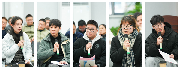 研究生处副处长邓青介绍了研究生教育提质升级行动方案。硕士研究生导师代表许志勇分享“六导”育人做法。18名研究生代表结合个人成长经历和学校研究生教育作主题发言。同学们普遍认为,学校研究生教育特色鲜明、成效显著,研究生培养质量不断提升。同学们也对学校的研究生教育提出了建设性的意见和建议。