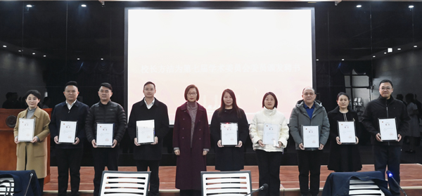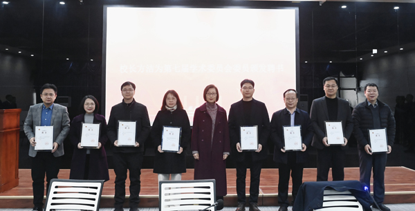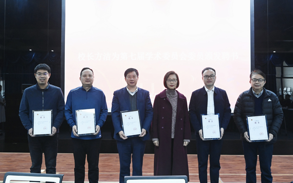 党委组织部部长王平作了第七届学术委员会换届说明。经过严谨的投票程序,选举产生了第七届学术委员会委员。校党委常委许传华当选第七届学术委员会主任,副校长付宏、校党委常委张忠民当选第七届学术委员会副主任,科研处处长刘国武当选第七届学术委员会秘书长,教务处处长戴化勇当选第七届学术委员会副秘书长。校长方洁为第七届学术委员会委员颁发聘书。