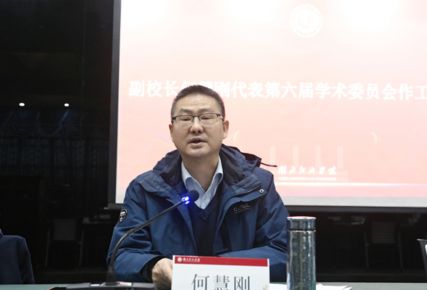 副校长何慧刚代表第六届学术委员会作工作报告。他全面回顾了过去五年的工作情况,指出第六届学术委员会在强化理论学习、完善工作制度方面成效显著;在认真开展相关项目的审议与评定、审慎做好学术荣誉推评、严格审定学术期刊目录、严肃调查处置学术不端问题以及服务科学道德和学风建设等方面扎实开展工作,为学校学术发展提供了坚实保障。