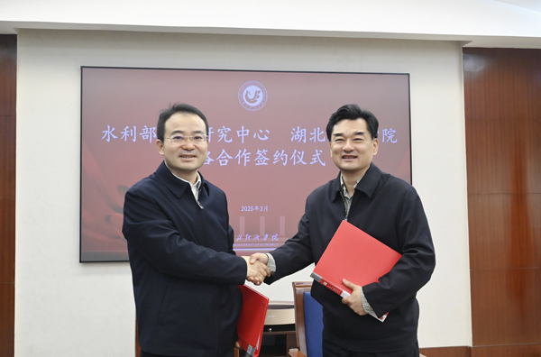 校党委书记高义勇与水利部发展研究中心党委书记吴强代表双方签署战略合作框架协议