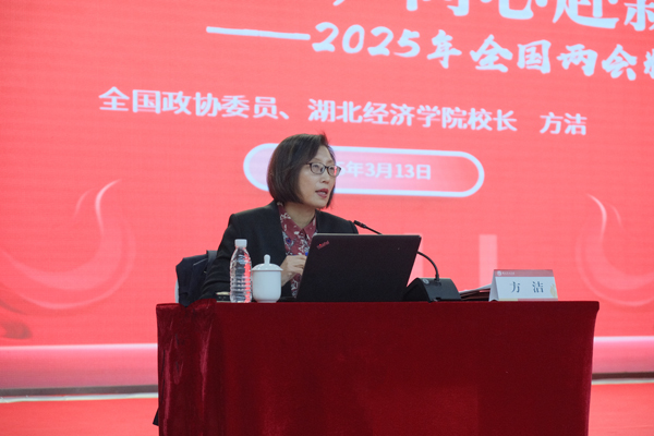 全国政协委员、民建湖北省副主委、校长方洁作宣讲报告