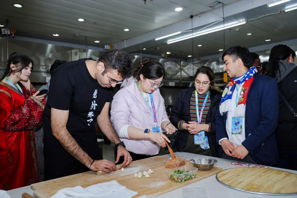 比赛之余,选手们还深入体验了中国文化。他们在楚菜研究院,亲手制作地道菜肴,感受中国饮食文化的博大精深;走进民俗非遗集市暨青年交流市集会,沉浸式体验书法临摹、版画创作和香囊制作;在樱花盛放的春日里登临黄鹤楼,感受千年名楼的壮丽与厚重。