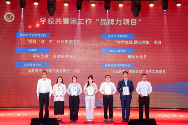 英语2242团支部等10个团支部获“十佳团支部”称号,“美好‘食’光”社区实践项目等7个项目获学校共青团工作“品牌力项目”。副校长何慧刚颁奖。