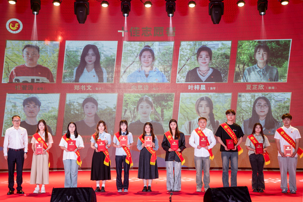 江立芸等18人获“五四红旗标兵”称号,郑书文等10人获“十佳志愿者”称号。校党委常委张忠民颁奖。