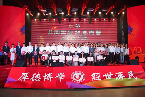 大会现场,大学生艺术团舞蹈队带来开场舞《茉莉芬芳》、星尘合唱团带来表演《看山看水看中国》,播放五四主题视频《还得是我》,校“青马工程”藏龙班(五期)全体学员进行青春宣誓,往届“经院学子奖”获奖校友代表发言。