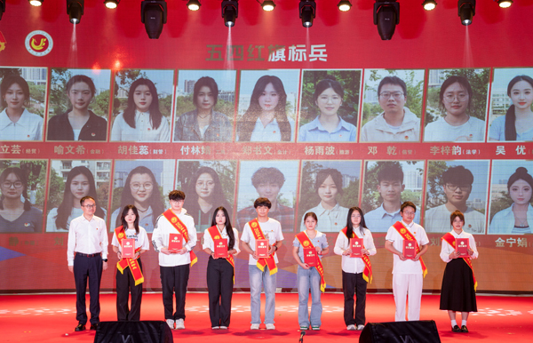 金融学院团委等8个团组织获“先进分团委”称号,李文慧等10人获“品德学业双优奖”。校党委副书记汪达颁奖。