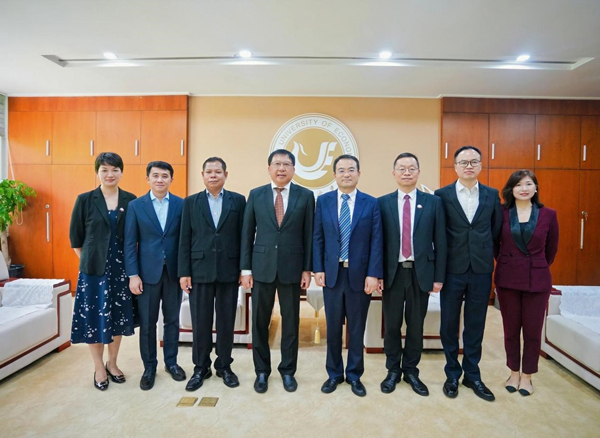 高义勇对金玛诺·蓬玛哈赛一行表示热烈欢迎,介绍了学校的办学历史、优势学科、科研学术与社会服务相关情况,重点介绍了我校数字教育及与“一带一路”共建国家的政策沟通、教育联通成果。高义勇期待双方在数字教育创新、中文国际推广、留学生联合培养等方面开展深度合作,通过构建多元化合作体系,加快我校国际化办学进程,为两国教育文化交流谱写新篇章。