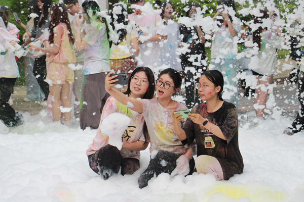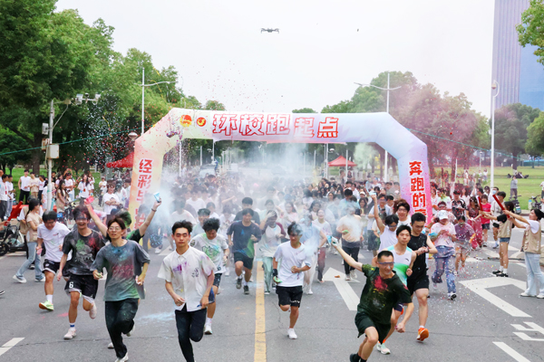 本次活动共设有“经彩纷呈”“踏波而行”“披荆斩棘”“繁花映记”“逐梦追影”五个互动点位,两个补给站为参与者补给各色玉米粉和饮用水。五个互动点位带给了参与者不同的体验。“经彩纷呈”点位的吹粉机在空中不断洒落色彩鲜艳的玉米粉,为夏日增添活力;“踏波而行”点位,工作人员手拿泡泡机与水枪与参与者互动,还为参与者发放水球道具;“披荆斩棘”点位设置了障碍物,参与者需跨越障碍物后继续奔跑;“繁花映记”点位摆放了500多枝不同种类的鲜花赠予学生,吸引了众多参与者合影留念;“追梦逐影”点位,泡沫机制造的泡沫铺满路面,雪白厚重的泡沫随着参与者的奔跑染上彩色,一群参与者们追着飘起的泡沫嬉闹,另一群则专注的调整镜头,还有人执着于抵达终点的目标,踏进泡沫却不停歇地前进。