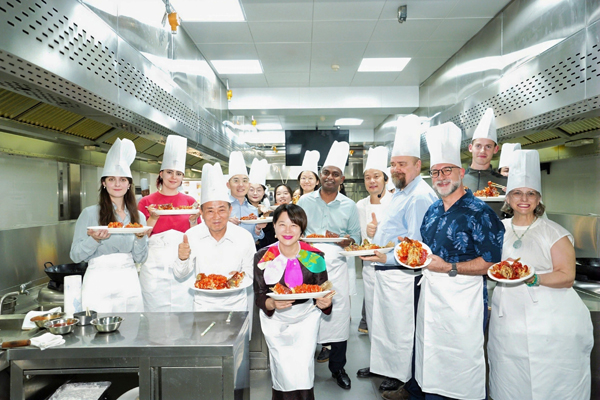 活动期间,校党委副书记、副校长付宏向嘉宾赠送《中国楚菜大典》。中外嘉宾一起参观楚菜产业学院烹饪五十周年文化展、学做茄汁珊瑚鱼、包粽子、参观卢永良邹志平技能大师工作室。楚菜现代产业学院师生展示龙须拉面、雕刻、整鸭去骨等烹饪绝活。