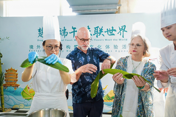 本网讯 5月23日,由湖北省人民政府外事办公室主办的“楚韵端午 味联世界”境外驻鄂机构楚菜文化体验活动在我校举办。来自韩国、法国驻武汉总领事馆,境外驻鄂商(协)会以及大专院校的中外嘉宾齐聚一堂,共品楚菜风味,共话中外情谊。