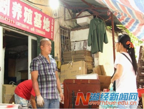 在向商家表明来意后,老板向队员们展示了蚯蚓品种,并介绍了相关的的市场情况:“市场上销售的蚯蚓品种是大平二号,大部分种源都来自汉南的蚯蚓养殖基地,同时我们也会从河北、西安等地购买”。队员们还认真了解了相关市场行情与购买顾客群。部分商家表示,“目前蚯蚓市场的发展并不完善,蚯蚓真正的价值还需进一步开发。而红安的环境状况确实比较适合蚯蚓养殖。”