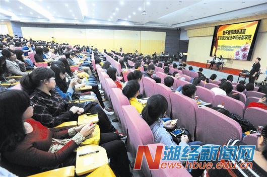 2013年10月26日下午,楚天金报十二周年系列活动“情感课堂”的第一场,来到风景秀丽的汤逊湖畔的ALLWINCITY万象城法商学院。带碧水,襟远山,风清气爽的校园,给人沉静之感。然而,慕名前来聆听情感课堂的学生们却让记者们见识了年轻人的活力。现场提问环节,学子们的小纸片纷至沓来,所问的问题也十分辛辣,充分反映了新时代大学生的恋爱观念与困惑。