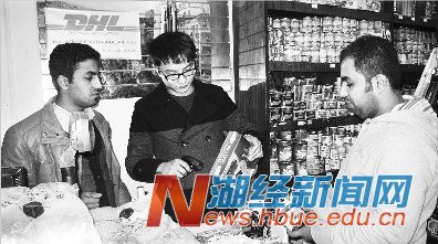 时值寒假,华师文化街上生意较淡,有的商家直接闭店歇业了,但阿拉伯便利店的生意却格外红火。昨日下午短短半小时内,小店就来了七八拨顾客。“这家店真不错,我们做饭需要的食材在这里都能买到!”武汉大学英国籍留学生茱莉亚选购了80多元的午餐肉和面包。