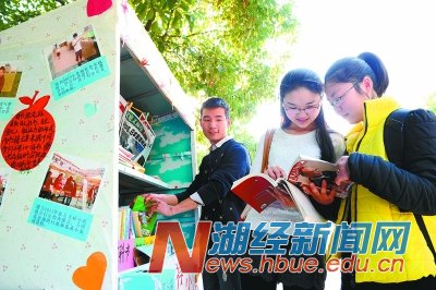 “诚信图书漂流站”是该院“吴天祥小组”的公益服务项目,这里提供教科书、教辅书、考研考级资料书和杂志类休闲书4类图书共1000多册,自去年9月启动以来,共借出图书500多本。学生只要自觉填写借还表格、在规定的3个月的时间内还书即可。通讯员杨宏斌 摄