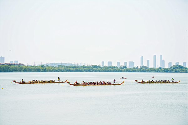 本网讯 5月29日,第二十二届体育运动会龙舟比赛暨校第九届龙舟比赛在水上运动基地举行。校党委副书记、副校长付宏,党委常委许传华出席。法商学院队、后勤集团队、亿优物业公司队分获教职工组冠、亚、季军,信息工程学院队、工商管理学院队、统计与数学学院队获学生甲组前三名,休体2342队、休体2441队、休体2341队获学生乙组前三名,继续教育学院转业军官队、长龙跃江自贸区代表队、东湖高新队获产教融合与校友组前三名。