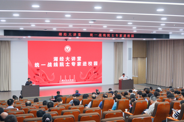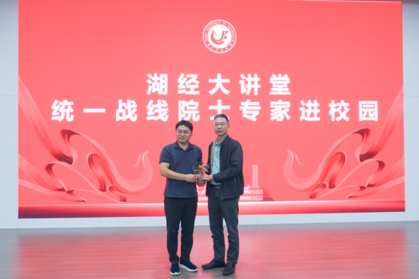 校党委副书记汪达向曾德泽教授赠送“湖经大讲堂”纪念品