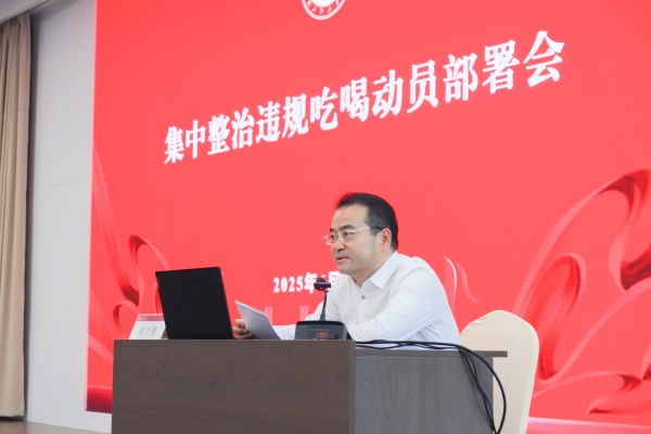 本网讯 6月12日,学校召开集中整治违规吃喝动员部署会。校党委书记高义勇作动员讲话。全体在家校领导,中层干部,党员代表参会,其他师生党员线上参会。校党委副书记汪达主持。