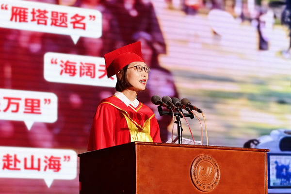 接下来,你们的名字将在学位授予仪式上被一一念起,尽管它们本身也是字符,但当这些名字在真实场景中被呼唤,那些父母满怀热望的期待,老师同学朝夕相处的情谊和你们在图书馆里翻过的书页、在实验室里反复打磨的数据、在画室地板上凝固的颜料斑点、在排练场汗水浸透的衣裳——所有这些具象的、凝结着过往时光的印记,都会在这一声呼唤中被熔铸进这两三个最美丽醇厚的字眼中。念你们的名字,不再是仪式流程中的一个个音节,而是真实落下的重量和回响,是今天我想要送给你们的关于“具体”的叮嘱。愿你们带着这被郑重呼唤的名字,去做将理想砸进现实、把蓝图变成砖石、让关怀送达指尖、给生活染进创意的——具体的、有力量的人,为这个本就具体的世界,增添一道独属于你的、无法磨灭的刻痕。母校永远记得你们的名字,也永远在杨桥湖大道8号守望着你们的归来,期待着你们反馈我们更多关于“具体”的力量。