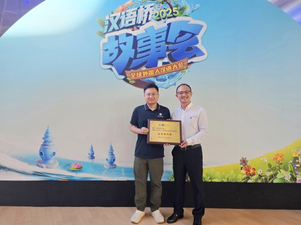 本网讯 日前,2025“汉语桥”全球外国人汉语大会故事会决赛暨颁奖仪式在杭州举行,我校获评“优秀组织奖”。