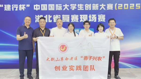 本网讯 近日,中国国际大学生创新大赛(2025)湖北省复赛在湖北工业大学落幕。我校获金奖1项、银奖1项、铜奖5项以及“建行杯”第八届湖北省“我梦见-楚天创客”大赛铜奖3项。其中,由创新创业学院、新闻与传播学院教师指导,校友孙双双担任负责人的《黑猪跑跑——数智赋能大别山革命老区乡村振兴的践行者》项目在金奖排位赛中,位居“青年红色筑梦之旅”赛道全省第二名,晋级国赛。校党委副书记、副校长付宏出席活动并看望我校参赛团队。