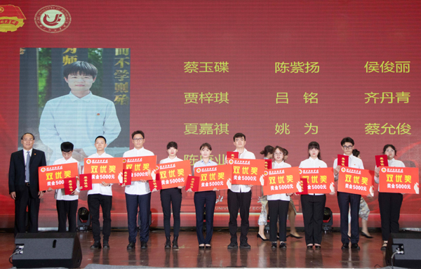 操唯宸等19名同学获“五·四”红旗标兵奖,党委常委许传华颁奖。
