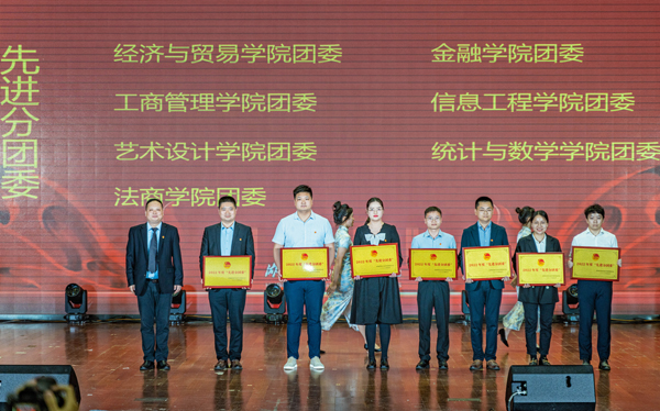 经济与贸易学院团委等7个团委获“先进分团委”奖,副校长付宏颁奖