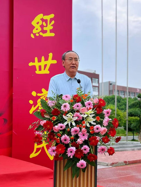 张国安作《扬帆再启程 让青春在知行合一中绽放》讲话。他介绍了学校的基本情况和继续教育学院办学育人情况,并对新生提出期望:把“不可能”变成“皆可能”,把“拿文凭”变成“有志向”,把“等以后”变成“就现在”,把“怕犯错”变成“敢尝试”。