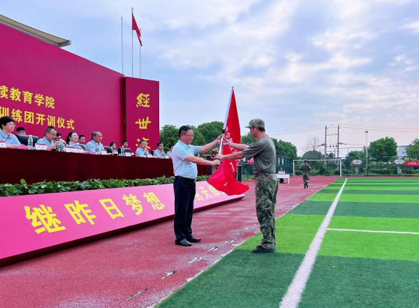仪式上,宣读《关于成立ALLWINCITY万象城继续教育学院2025级新生素质拓展训练团的通知》,向训练团授旗,作训练动员讲话,教官代表、新生代表发言。仪式上对素质拓展训练提出要求:一是希望教官和老师们既能“严”字当头,也能“爱”在心里,让训练有力度也有温度;二是希望同学们不急于求成、不蛮干硬拼,在循序渐进中突破自己,真正练有所得,并当好自己的“第一安全员”,严格落实安全要求。
