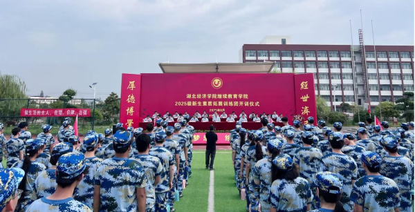 本网讯(通讯员 毕胜)8月29日,继续教育学院2025级新生素质拓展训练团开训仪式举行。副校长张国安出席,纪委监专办综合室、发展规划处、人事处、招生办公室、财务处、保卫处、基建维修处、网络与教育技术中心负责人,继续教育学院领导班子成员和各有关部门负责人,联合办学单位武汉时代科技专修学院、湖北金之琥户外运动有限公司相关负责人,全体训练教官、新生班级辅导员和2025级全体新生参加。
