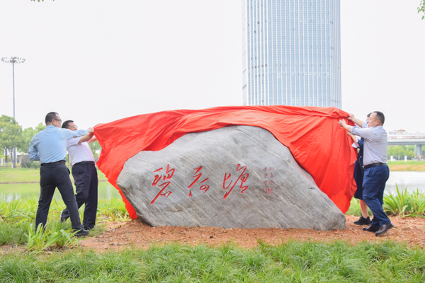 团石揭幕仪式在碧荷塘前启动。叶晓东,往届团友、团石捐赠代表叶艳东、姚勇强、鲁飞侠及团内成员参加。