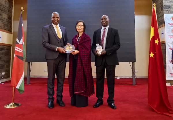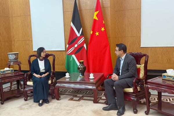 10月15日,方洁一行拜访中国驻肯尼亚大使馆。中国驻肯尼亚大使馆公参张执中会见方洁一行。方洁介绍了我校与马赛马拉大学共建孔子学院的进度及学校大力推动国际中文教育的措施,表示学校将进一步夯实国际中文教育的基础,深化拓展对肯交流合作,恳请大使馆对我校拓展“一带一路”教育资源予以指导与支持。张执中对方洁一行表示热烈欢迎,并全面介绍了中肯教育发展及各领域合作交流情况,对我校拟在肯建立孔子学院所做工作给予充分肯定并提出意见。希望学校进一步发挥优势,深化中肯合作,促进中肯教育合作深层次发展。在肯尼亚期间,方洁一行还拜访了当地中资企业徐工集团,共商在经济、贸易、物流等方面的校企合作。方洁为徐工集团负责人张远翔颁发我校行业导师聘书。方洁还与20级工商管理学院校友王家乐会面交流,教务处负责人为其颁发我校2025级新生荣誉班主任证书。